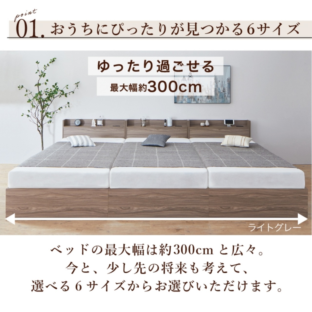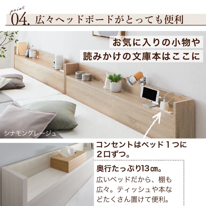 【匠モデルマットレス付 WK300(S+S+S) お客様組立】棚コンセント付き 引き出し収納 天然木調連結ファミリーベッド Ever X family