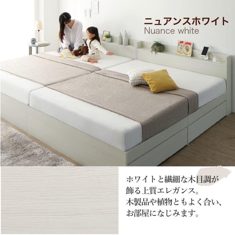 【匠モデルマットレス付 WK220(S+SD) 組立設置サービス付き】棚コンセント付き 引き出し収納 天然木調連結ファミリーベッド Ever X family